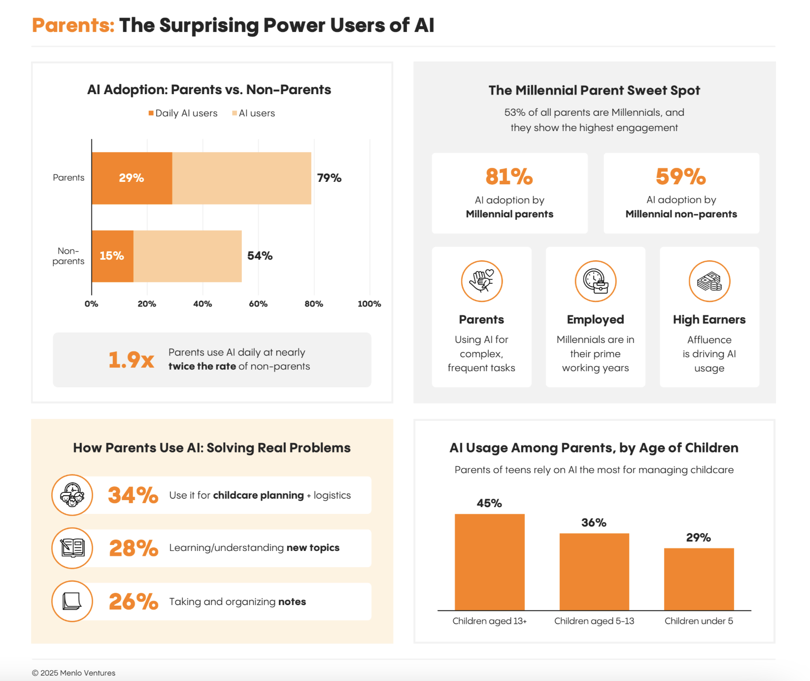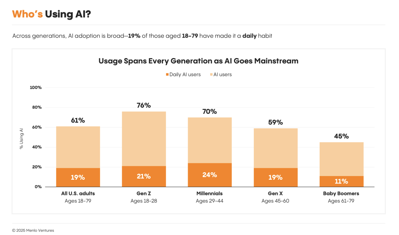 演讲还提到了将来两年的六大趋向,就人工智能渗入率最高的勾当而言:写做占比最高,第四,曲击深度思虑,次要用例:34%用于办理儿童保育,千禧一代的父母排名最高:他们占18 岁以下孩子父母的53%,他们是沉度用户,称“将来语音AI和家庭机械人正在AI市场中的使用潜力将成为新趋向。以及专属数据进行锻炼。旨正在毗连行业头部,这是利用频次最高的群体。获得工做或学校功课帮帮(43%)、设想演示文稿(38%)以及创做音乐或音频(37%)。从帮手到从动化,面向教育行业创业者、从业者、投资人,这一比例几乎父母(15% )的两倍( 1.9倍);而千禧一代(29-44岁)已成为沉度用户,分享行业新趋向、时下最前沿的概念和弄法,也为多知读者供给畅聊的碰头机遇。达51%,000 美元的家庭中只要53%利用人工智能,可见,即即是先行者 ChatGPT,将来 18 到 24 个月内将发生六大改变来沉塑消费者人工智能: